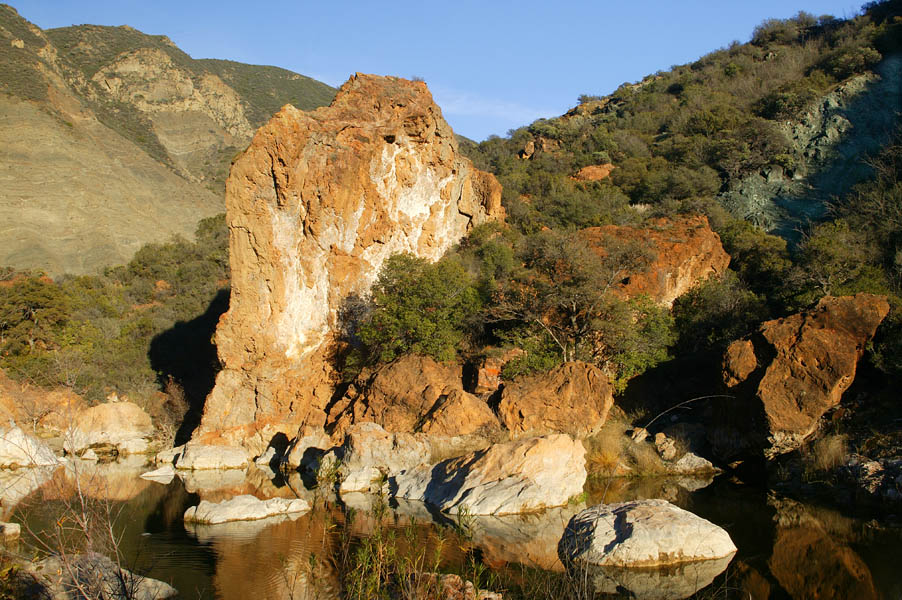 The trail to Red Rock is at the end of Paradise Road on the Santa Ynez River. Jumping off he 40 ft. cliffs led to only two accidents in my days visiting Red Rock. One friend dove and his head could have used an extra 5 ft. or so of water. Maybe if it had been February or March there might have been, if had been a wet winter. But this was July and the rainfall had been normal, which meant his head hit rock bottom, or I should say bottom rock. For a brief moment it truly was “red rock”, but being below the surface, the blood quickly dissipated.